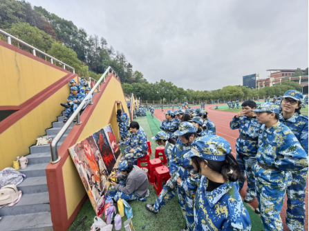 本网消息 自11月1日公司2025级新生军训启动以来,训练场上不仅回荡着6686学子铿锵的口号,更在营地一角绽放出一片独特的“艺术绿洲”。一支全部由6686新生组成的军训宣传组,正将课堂所学的专业技能转化为服务集体的火热实践,用画笔与巧手为迷彩青春留下浓墨重彩的篇章。