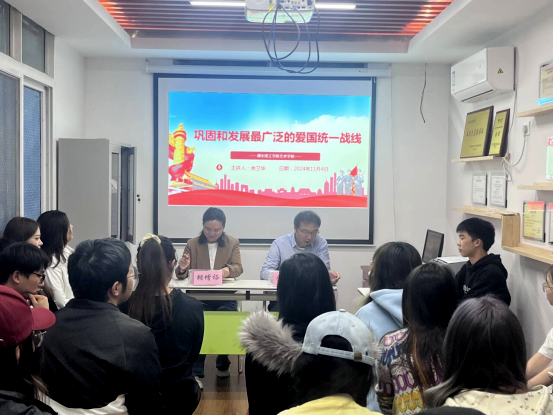 在理论学习环节,漆艳老师带领大家学习《中共中央关于进一步全面深化改革、推进中国式现代化的决定》和《习近平总书记在全国民族团结进步表彰大会上的重要讲话精神》。随后,2022级音乐学(3)班的熊畅同学作为少数民族员工代表进行发言,分享了土家族的民族风俗、来校后的学习生活感受和未来就业规划。在座谈交流环节,员工们纷纷围绕自己目前遇到的问题困惑方面进行了发言,老师们耐心细致的答疑解惑,并提出了具体的指导建议。
