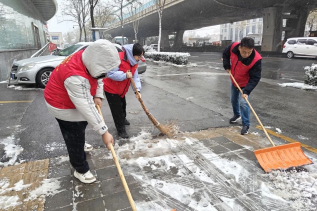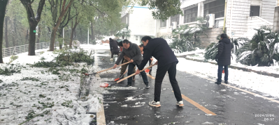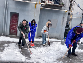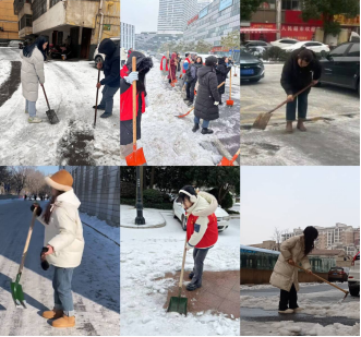 “积雪未化,车辆打滑,风险系数高,一定要注意安全!”2月26号正值开学前期,学院领导班子成员和部分党员教师顶着风雪一边铲雪,对道路积雪、和压垮的树枝进行清扫,一边提醒路过的老师们注意安全,做好道路畅通工作。“志愿红”与白雪交相辉映,成为冬日里一道靓丽的风景线。