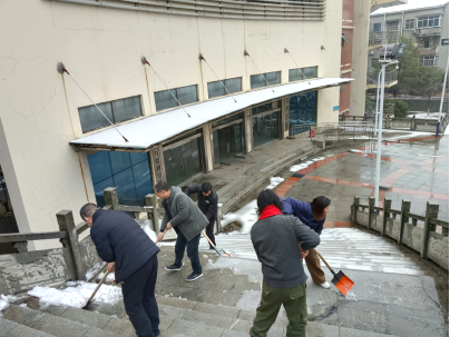 领导班子成员带头清理学校道路冰雪