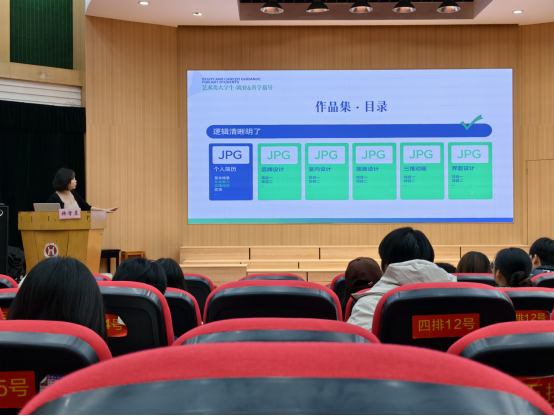 讲座中,韩学晨深度拆解简历与作品集打造技巧。简历方面,她解读了市场“8S筛选”机制,强调“简洁明了、精准高效”,建议遵循“单页优先”原则,统一字体格式、合理划分模块,聚焦与目标岗位相关的实习经历,实现“简而不空、洁而有料”。作品集创作则需确立核心主张,完整呈现从灵感调研到迭代反思的全过程,通过逻辑叙事与视觉节奏传递专业能力。