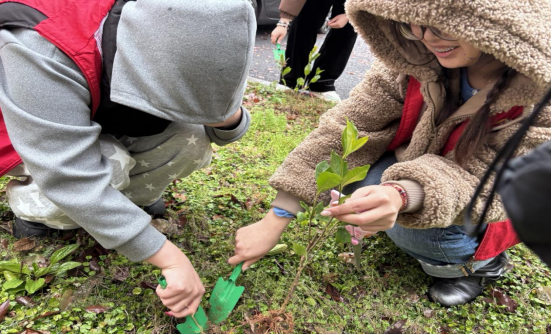 尽管春雨淅沥,却丝毫没有阻挡志愿者们的植树热情。在腾龙公寓四区,大家冒雨挥锹铲土、扶苗填坑、踩实浇水,分工明确、配合默契。雨水打湿衣衫,却浇不灭青春担当,一棵棵新苗在春雨中扎根挺立,寓意着绿色希望与雷锋精神一同茁壮成长,以实际行动践行生态文明理念。