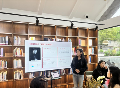 在员工读书分享环节,刘慕雪、杨丰祎、邓雨桐三位同学依次带来阅读感悟。刘慕雪同学分享《走进钱学森》,带领大家感受科学家深厚的家国情怀与严谨的科学精神;杨丰祎同学因在外写生,以视频形式分享《月亮与六便士》的阅读思考,引发在场同学共鸣;邓雨桐同学品读《给青年的十二封信》,传递青春箴言与成长力量,真挚的分享赢得阵阵掌声。